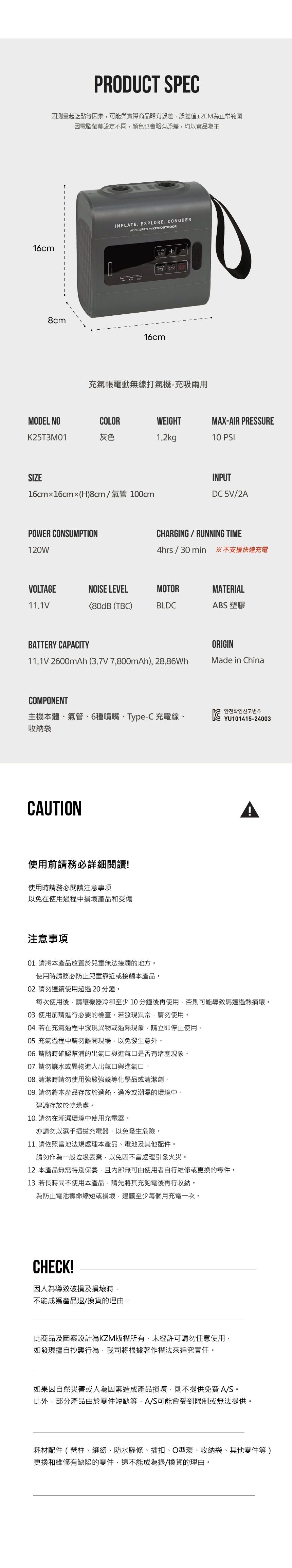 KZM 充氣帳電動無線打氣機-充吸兩用