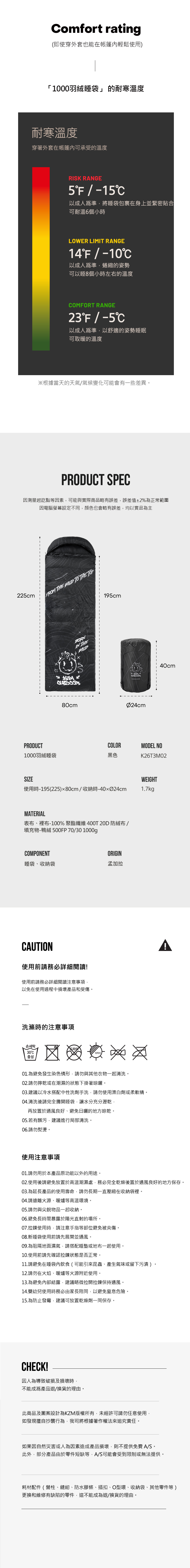 KZM 1000羽絨睡袋