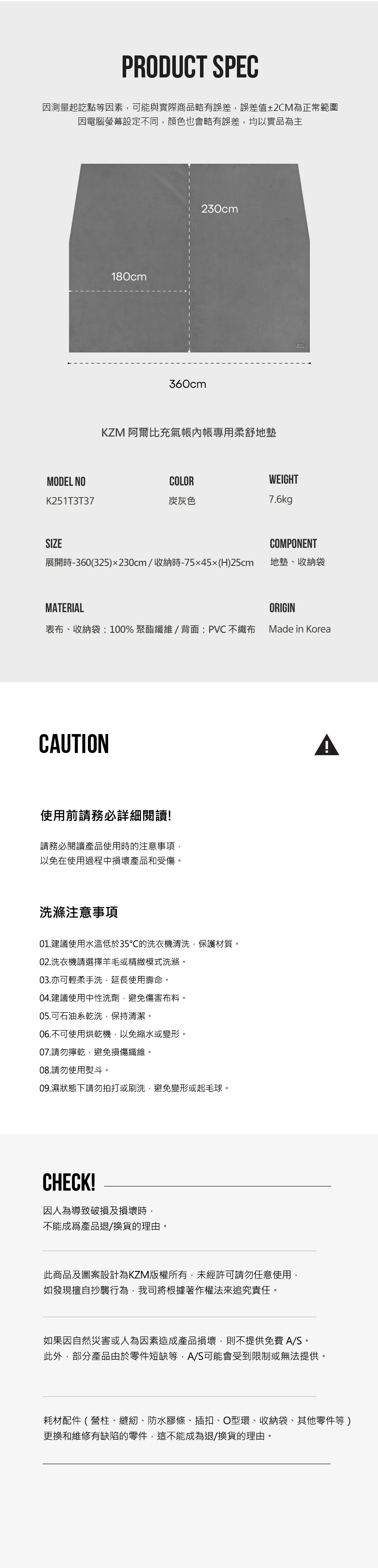 KZM 阿爾比充氣帳內帳專用柔舒地墊