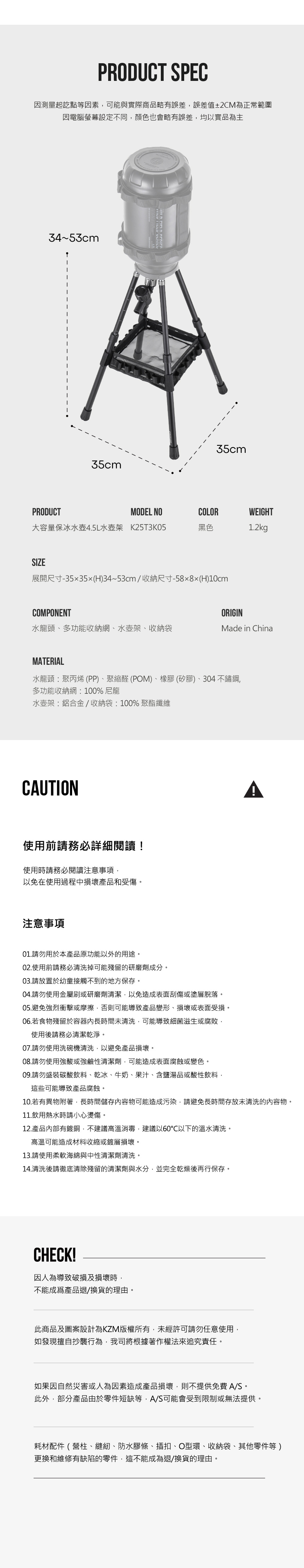 (預購)KZM 大容量保冰水壺4.5L套裝組 (水壺+水壺架)