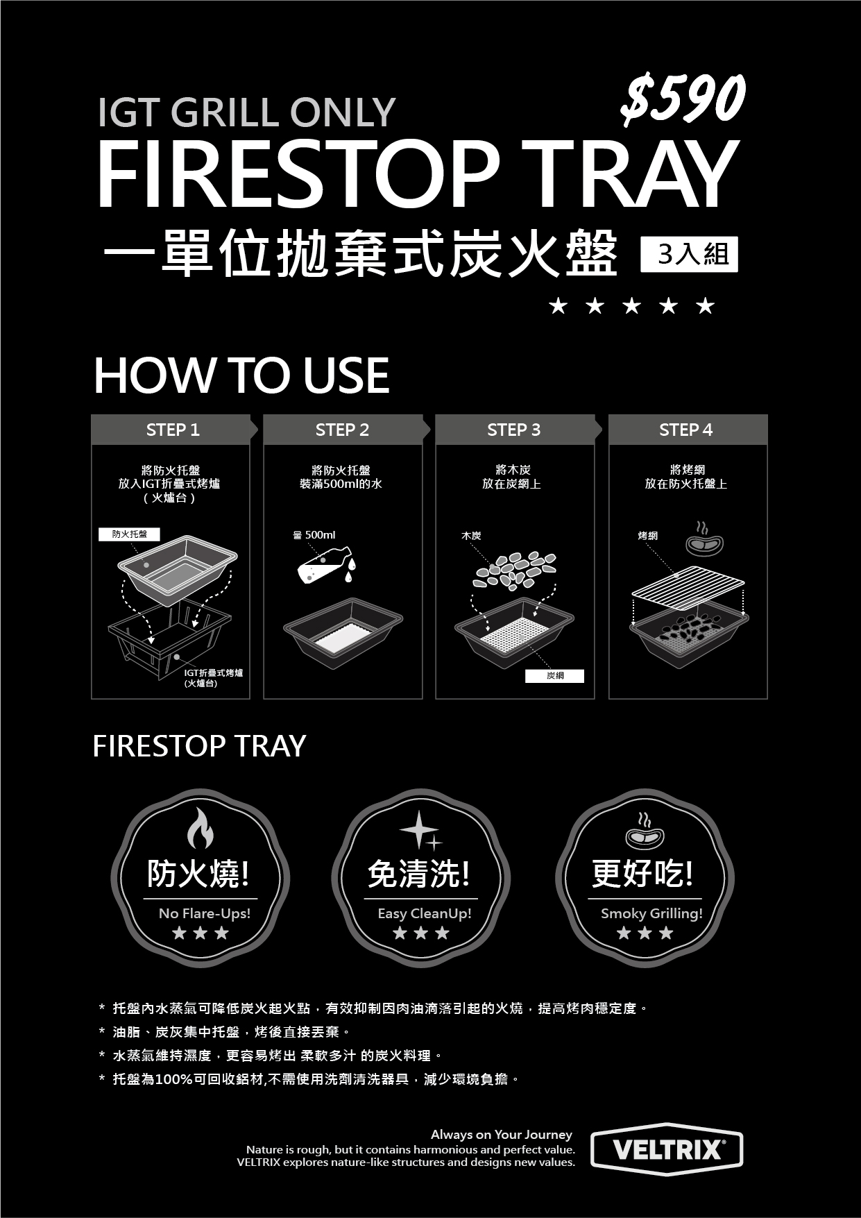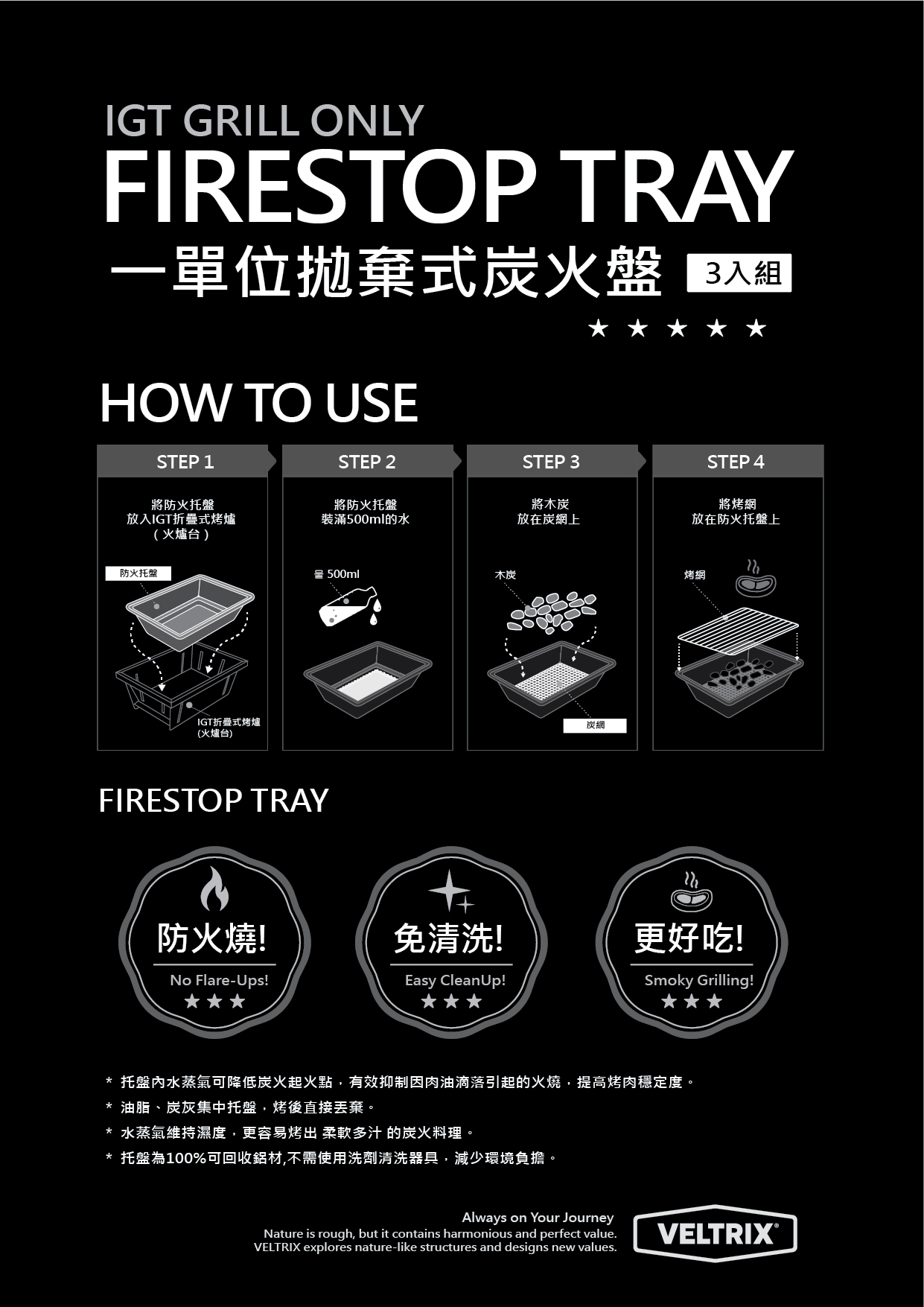 VELTRIX FIRESTOP TRAY 一單位拋棄式炭火盤(3入組)