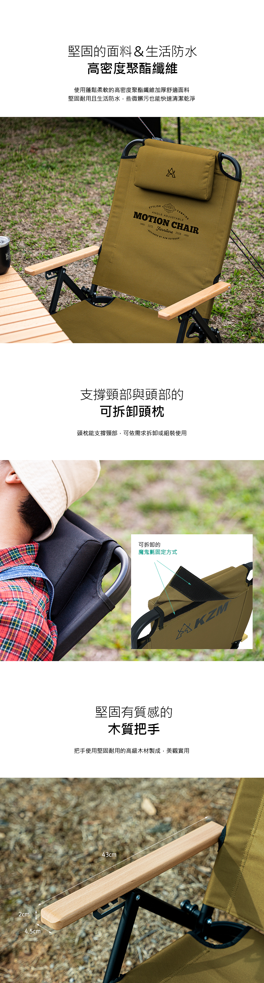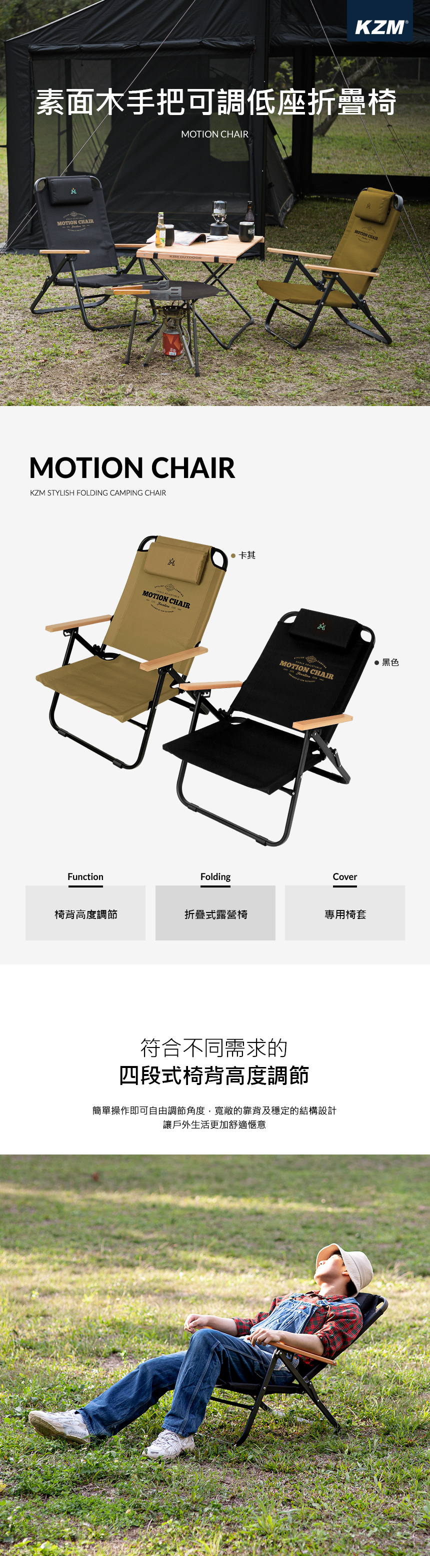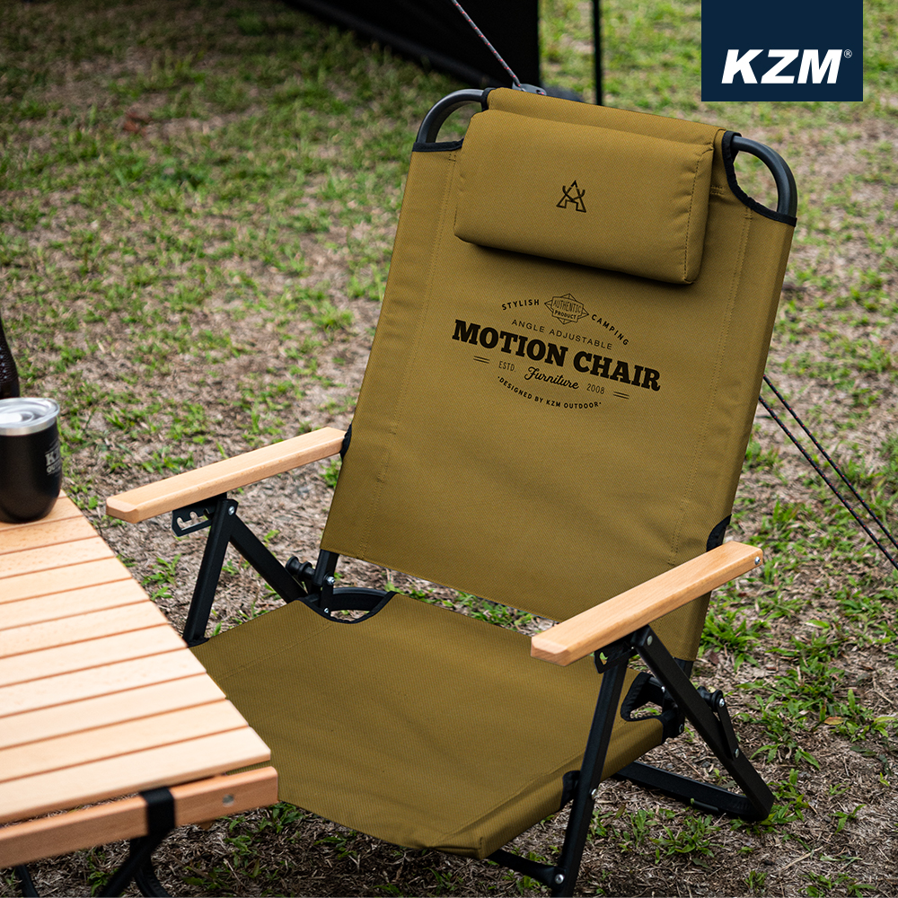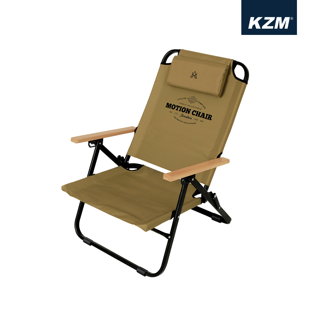 KAZMI KZM 素面木手把可調低座折疊椅(卡其色)