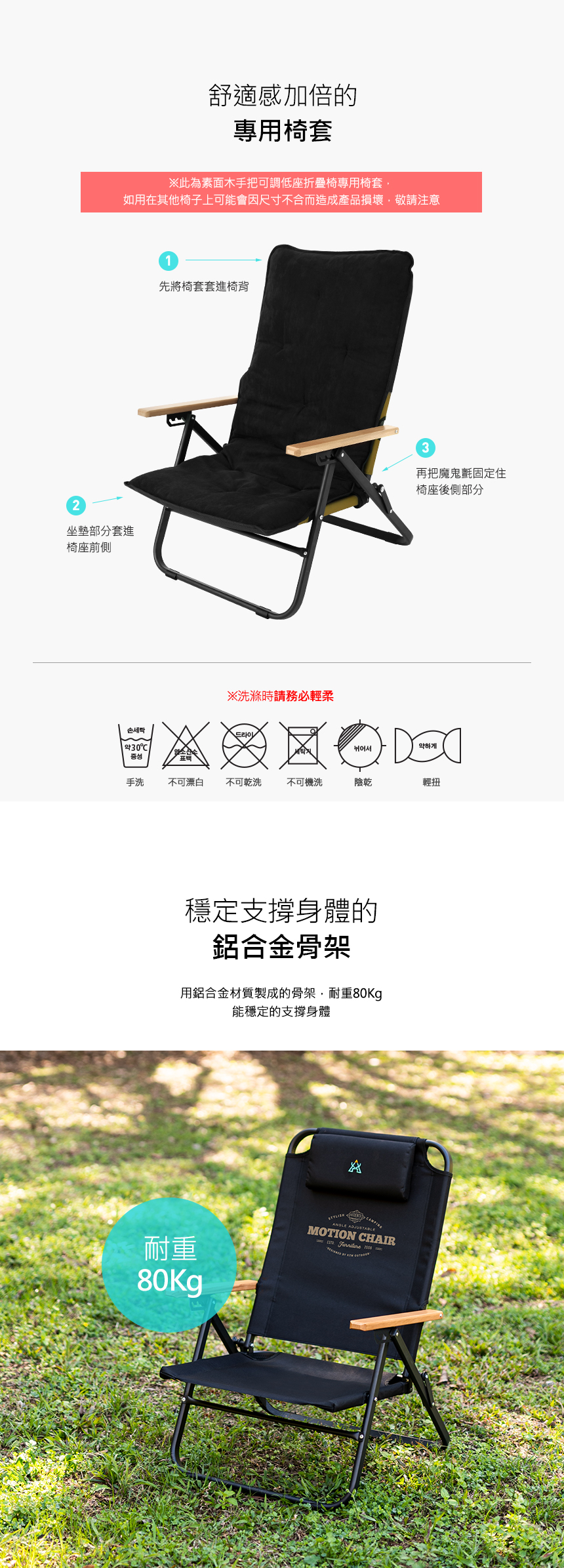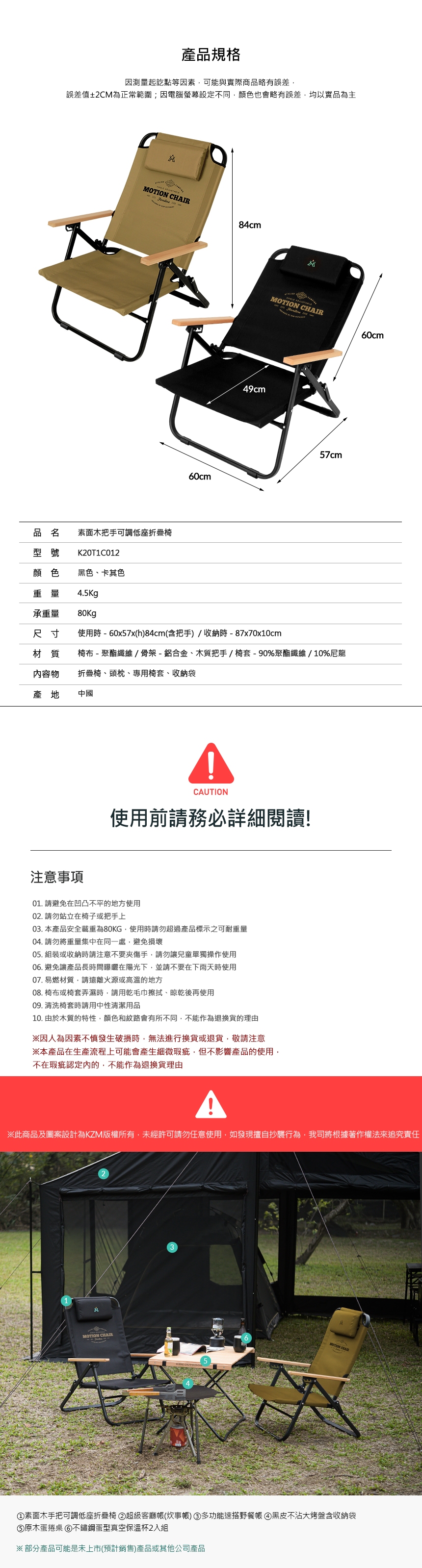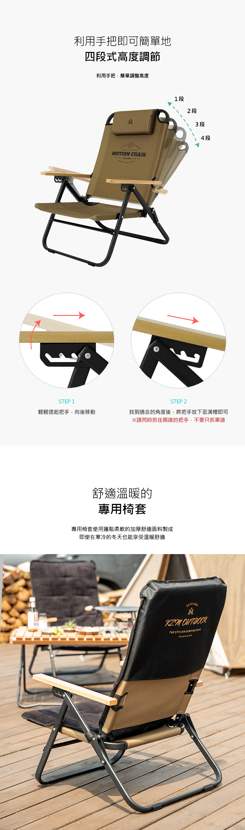 KAZMI KZM 素面木手把可調低座折疊椅(卡其色)